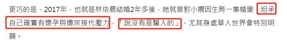 早在2017年,林依晨就坦言过自己有传宗接代方面的压力。