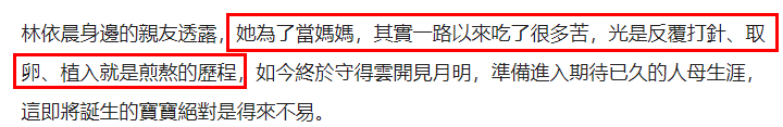 在漫长的求子路上,林依晨因为迟迟不成功,不仅吃了很多受孕的苦,她还暂缓工作、推掉了许多剧本,可以说是十分艰辛。
