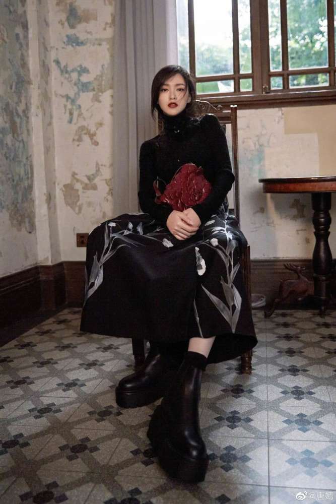 从照片中可以看出,罗晋视角的唐嫣满满的少女感。但是穿着黑色长裙的唐嫣又增添了一丝女王范。