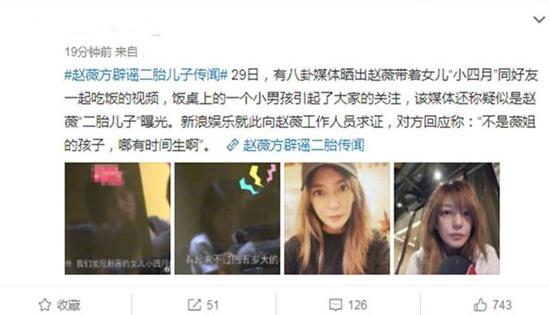 此前,赵薇方还曾就网传二胎儿子消息辟谣。